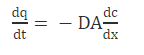 As the infant suckles on the milk, the milk enters the silicone shield, and is in contact with the tablet. This causes the tablet to diffuse and release its API into the milk. The drug delivery system is controlled by diffusion, which is the process by which molecules move from an area of high concentration to low concentration (Siepmann and Siepmann, 2012). The scientific law related to diffusion is Fick’s law, which describes what happens when a solute travels from one area to another, separated by a thin membrane over the course of time. It is given by the following equation:
